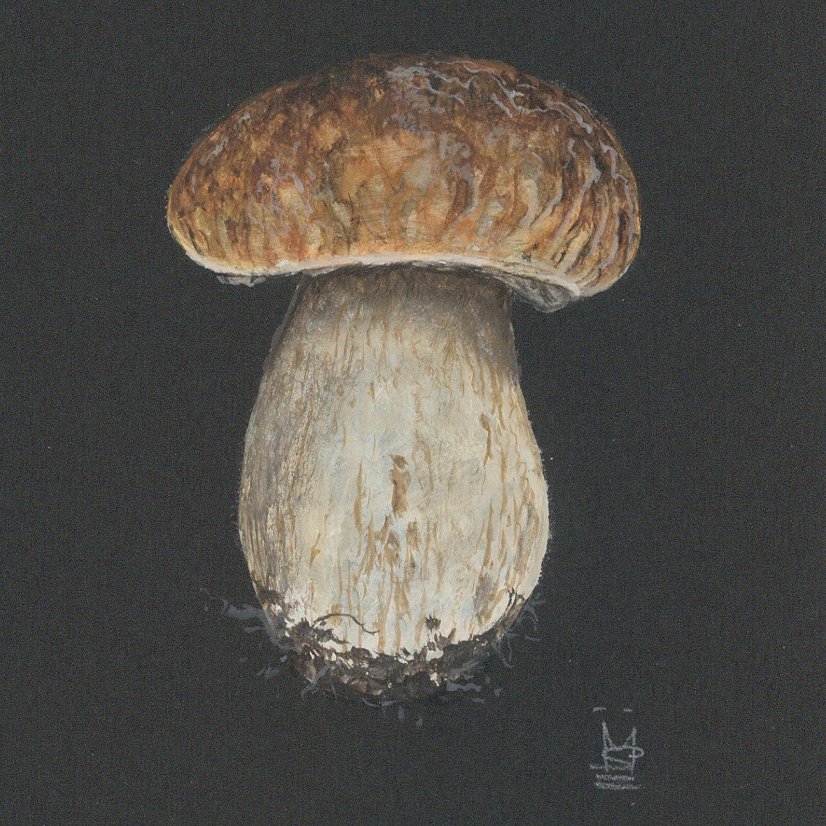 The Porcini mushroom is a delicious edible mushroom with characteristic bulbus stalk.