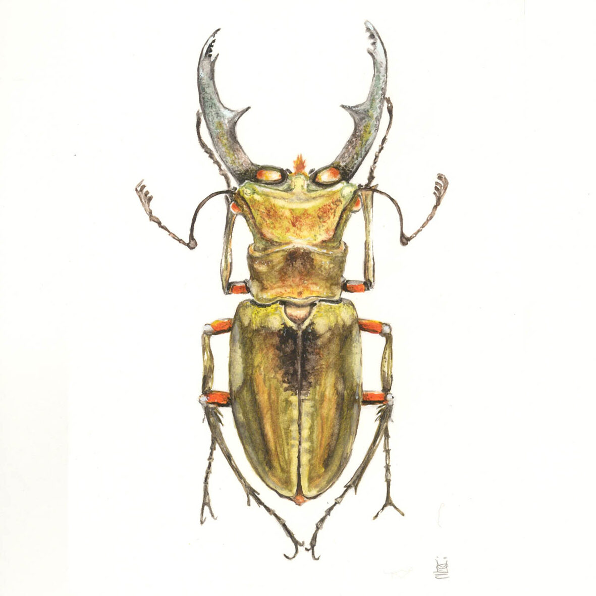 A small study of the Stag Beetle from an original painting in Gouache.